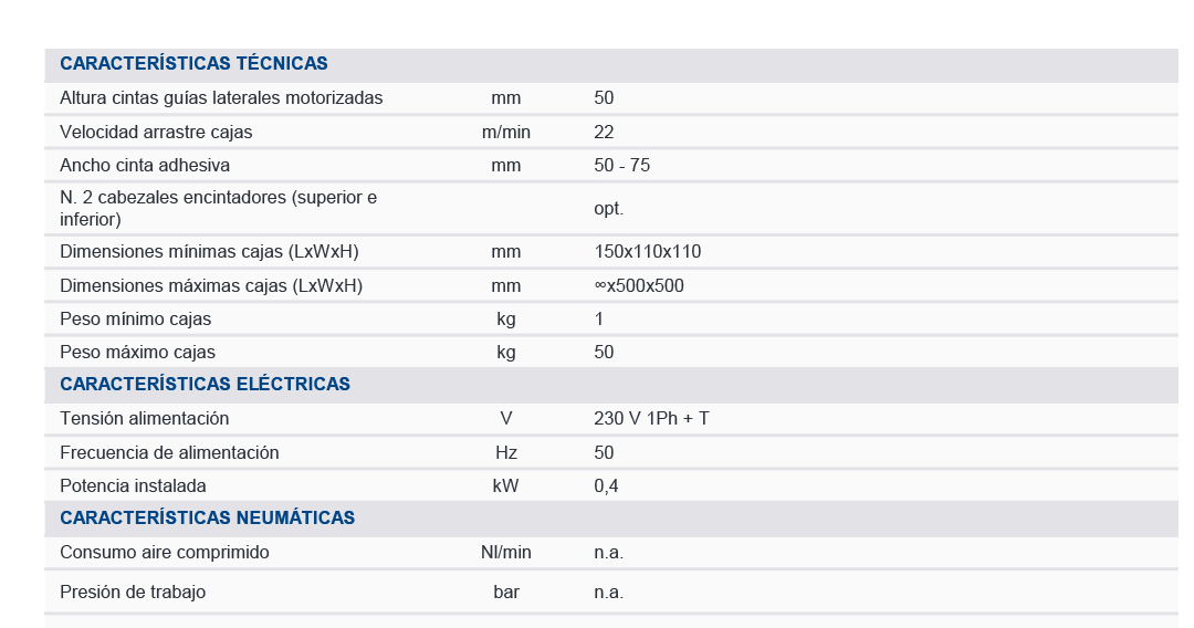 Están disponibles dos tipos de cabezales precintadores para cinta adhesiva de 50 mm o 75 mm de ancho.